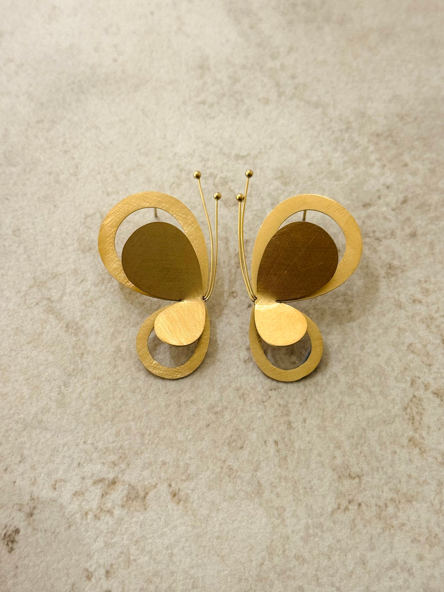 Brushed Gold Butterfly Stud Earrings