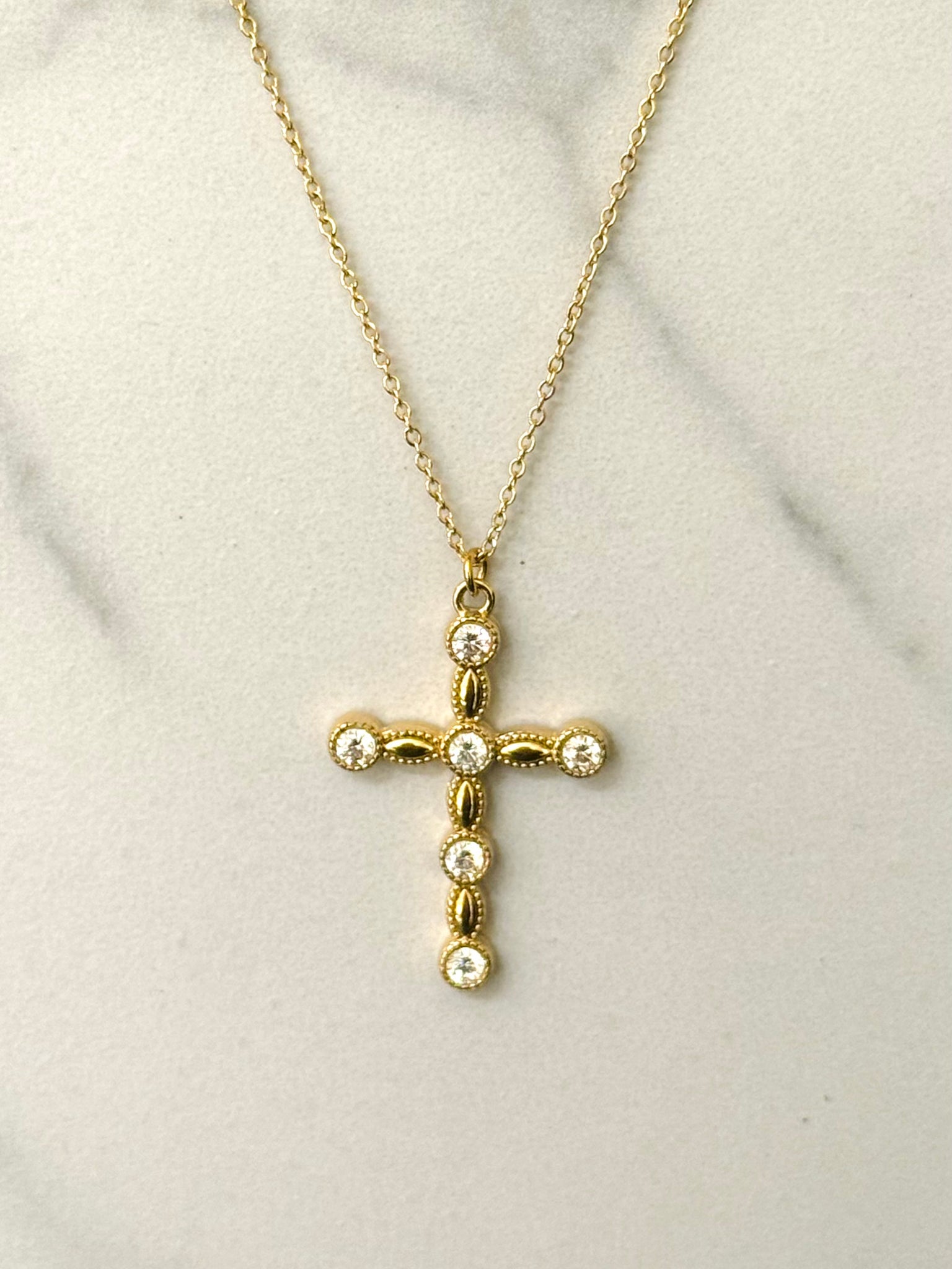 Cross Necklace w White Zirconias