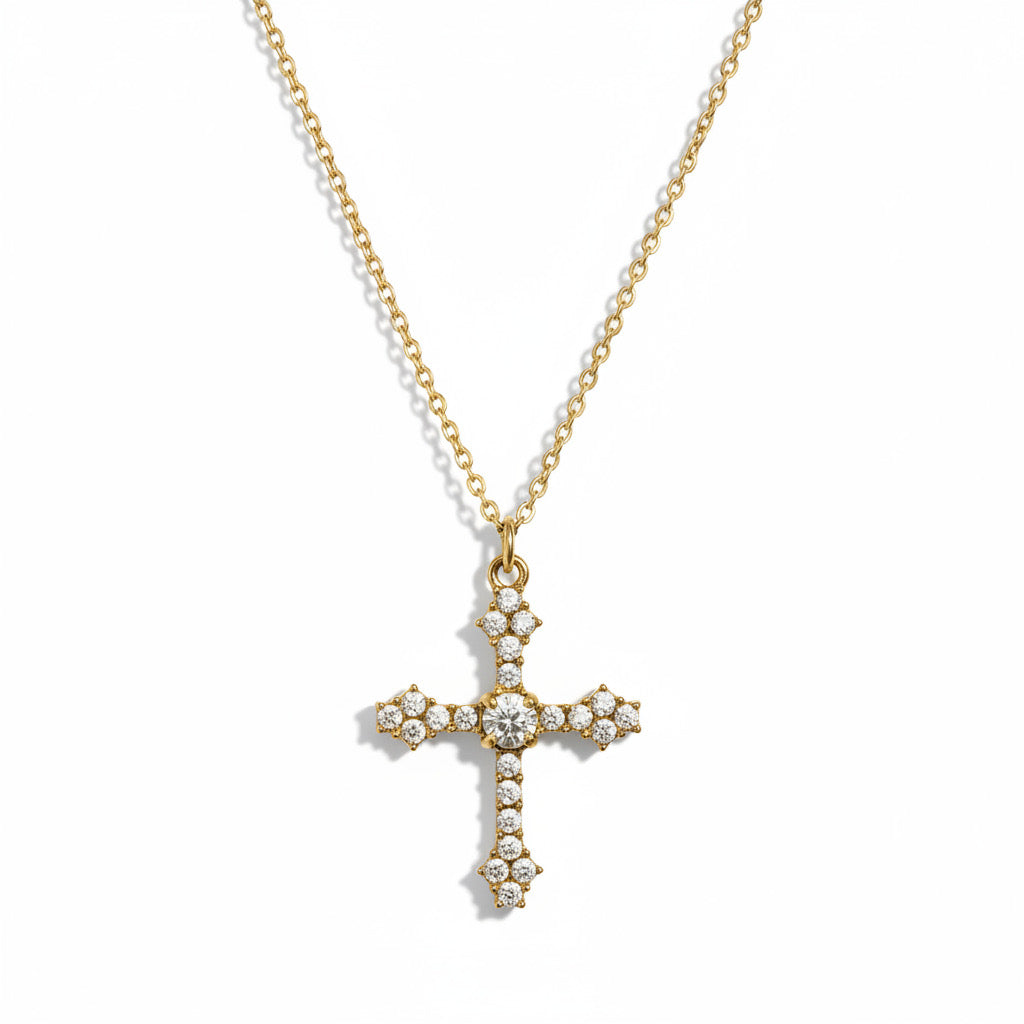 Waterproof Cross Necklace w White Zirconias