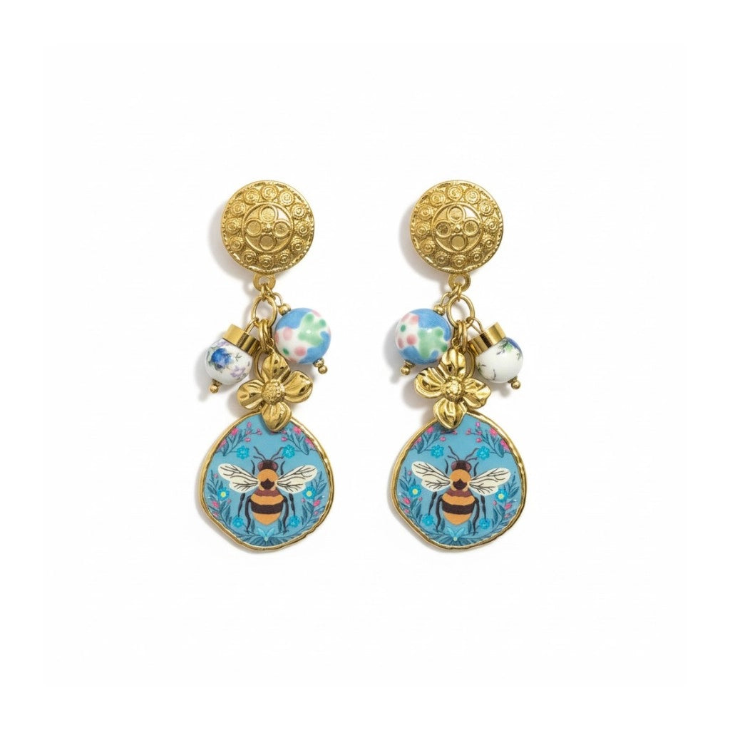Bee Painting Stainless Steel Dangle Earrings